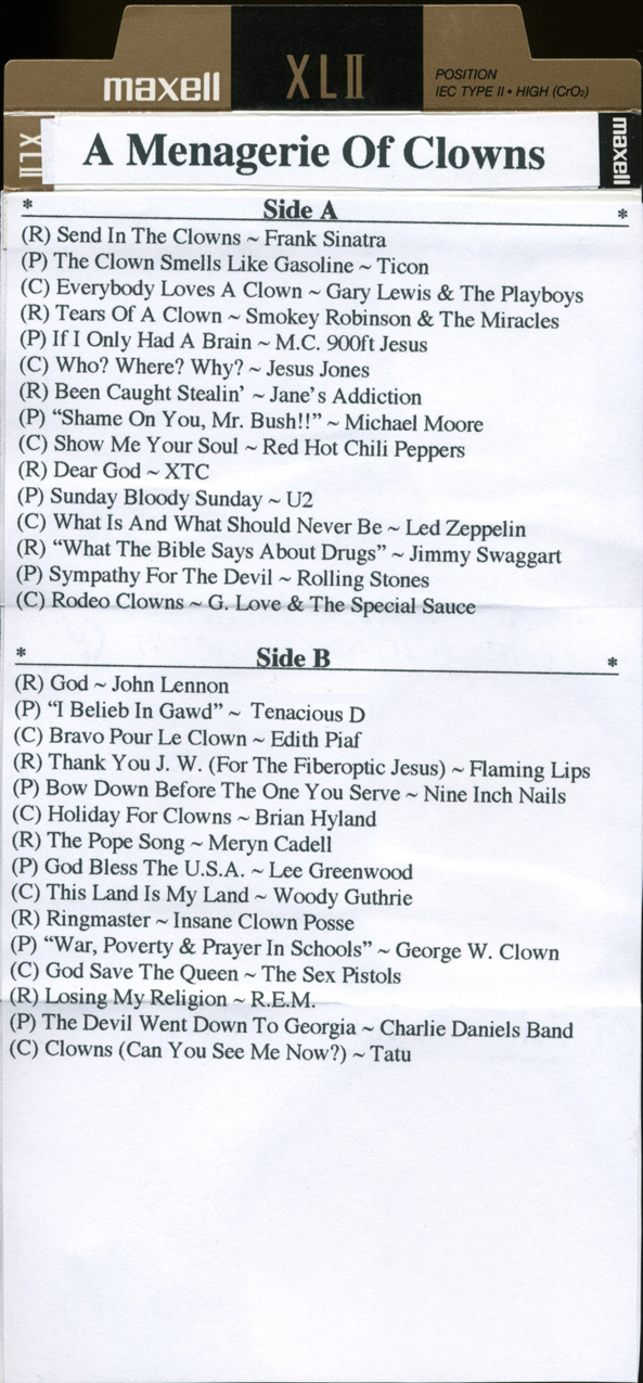 A lot of times the first thing I put on a mix isn’t even a song! It might be a bit of dialogue, some crazy sound effects, or the sound of the radio—just something that’s not a song, to make them wonder what they’re listening to—what this whole experience is gonna be like. It’s a little unsettling, and maybe it’s supposed to be that way to send that message of, well, you don’t know what’s gonna happen next, and you better be ready for anything! (Klaus)