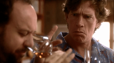 Based on my reading of the film Sideways and its effect on the U.S. wine market, I propose that the relationship between democracy and distinction may be less antagonistic or contradictory than Johnston and Baumann suggest. Rather than conceptualizing democracy and distinction as conflicting ideals in tension with one another, I argue that the conceptually egalitarian meritocracy of taste only appears to be open to all kinds of foods and all kinds of people in order to legitimate a taste hierarchy that is actually narrow and exclusive and works primarily to distinguish social classes, not enable class mobility. In other words, democracy is the illusion that enables people to use food as a form of cultural capital in an era of normative egalitarianism.[xxiii] Ultimately, this aligns more with LeBesco and Nacarrato’s argument about the ideological work of lifestyle programming, although I am using their term “culinary capital” in a slightly different way by insisting that it is real capital and not merely illusory. In addition to the increasingly widespread pursuit of the “authentic,” the “meritocracy of taste” manifests in the idea having of a good and trainable palate and the construction an ideal of genuine “connoisseurship” based on the appreciation of food for food’s sake as opposed to bad or inauthentic “food snobbery” based on conspicuous consumption and class pretension. Sideways reinforces this meritocracy primarily through the contrast between how Miles, Jack, and Maya drink and talk about wine.