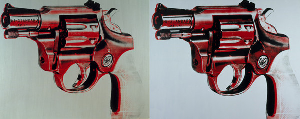 In the video, when combined with the projected sequence of Warhol’s “Gun” (pictured in Figure 1) and “Electric Chair”3 that flash against the backdrop, Reed’s threat to “pull the switch on” Solanas himself further participates in the familiar strategy of securing his “masculine” control. He executes this attack through a narrative that both denigrates Solanas at a safe distance and identifies her as a palpable threat to society.